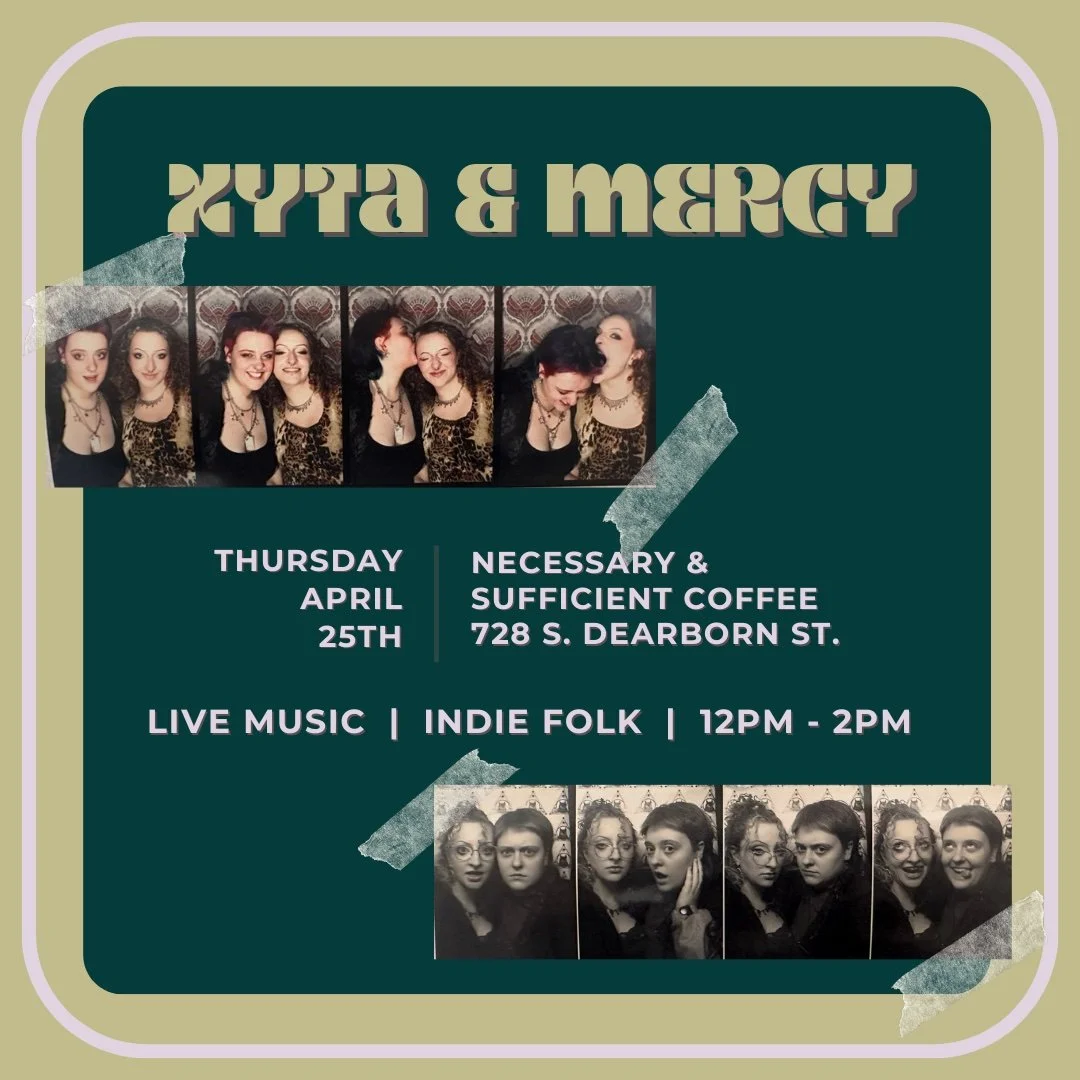 Singers, song writers Xyta and Mercy bring their indie folk vibe to the cafe. Join us for smooth tunes from 12-2 pm