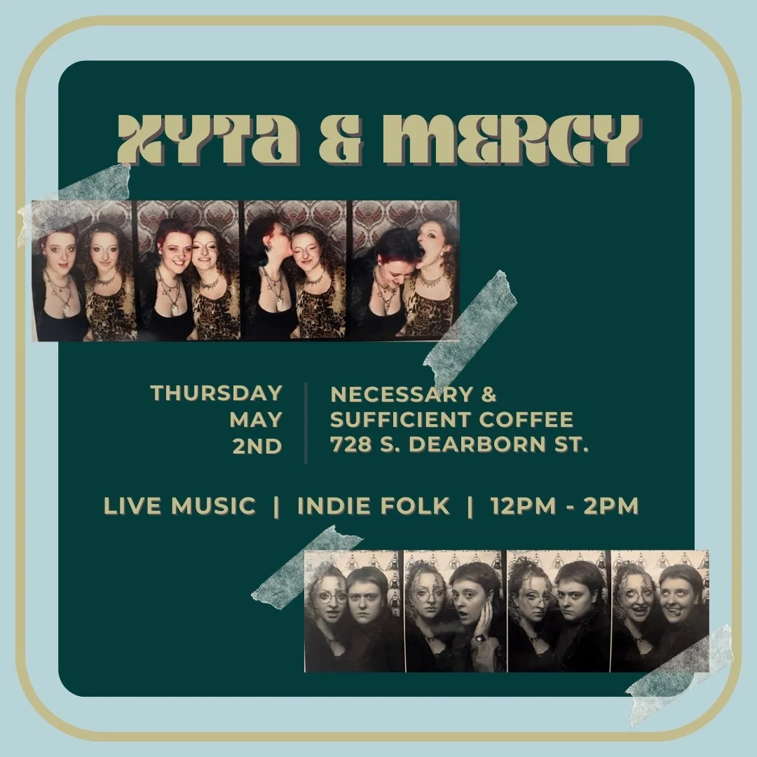 Singers, song writers Xyta and Mercy bring their indie folk vibe to the cafe. Join us for smooth tunes from 12-2 pm